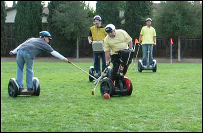Our gracious host Steve Wozniak took us to the Sunnyvale park where The Bay Area Segway Enthusiasts Group holds matches twice a month. As their website notes "Segway Polo is a lot like regular polo, but with nothing to shovel." Instead of horses, combatants ride their trusty Segways, as two teams fight it out to see who can hit a ball through the other's goal the most times.